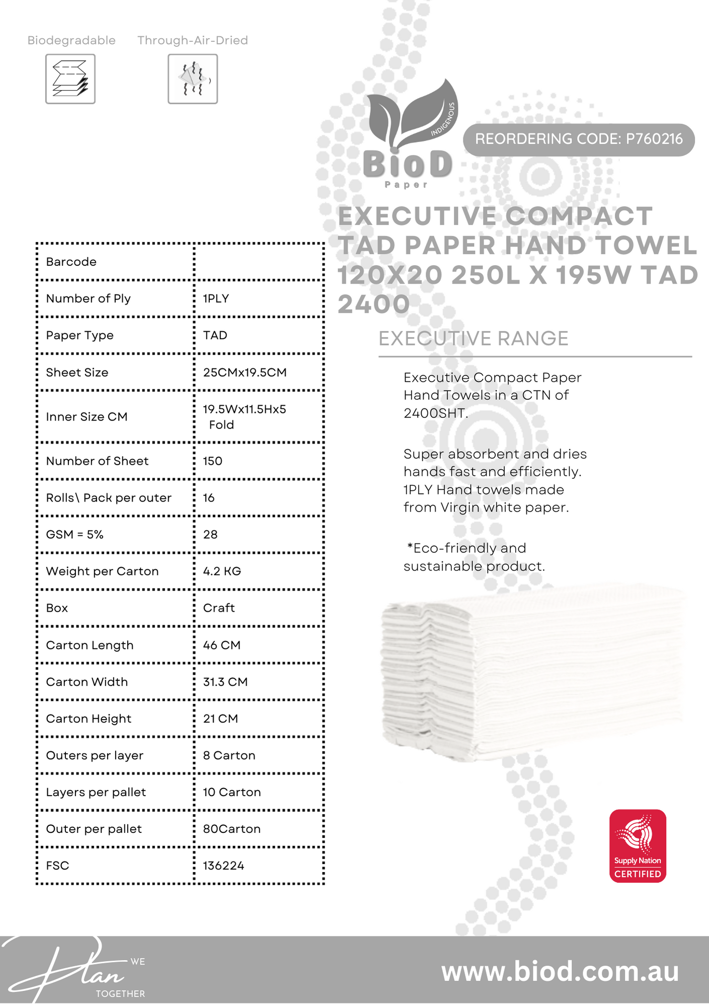 BIOD - EXECUTIVE COMPACT TAD PAPER HAND TOWEL 120X20 250L X 195W TAD 2400